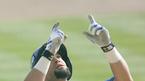 17일 플레이오프 4차전 5회말 1사 만루서 두산 홍성흔이 2타점 좌전 적시타로 4-4 동점을 만든 뒤 1루에 나가 특유의 활기찬 제스처를 취하고 있다. /잠실=손용호 기자