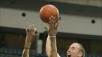 19일 잠실 학생체육관에서 벌어진 프로농구 시범경기서 SK의 백인 용병 크리스 랭이 SK 달테즈를 앞에 두고 훅슛을 던지고 있다. / 손용호기자
