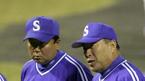 한국시리즈 개막전 식전행사 도중 삼성 김응룡 감독의 얘기를 선동렬 코치가 귀를 기울여 듣고 있다. /수원=손용호 기자