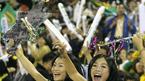 21일 한국시리즈 1차전 4회말 브룸바의 선제 솔로 홈런이 터지는 순간 현대 치어리더들이 환호하고 있다. /수원=손용호 기자