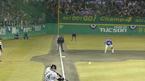 21일 한국시리즈 1차전 6회초 2사 후 삼성 양준혁이 팀의 첫 득점이 된 좌월 솔로 홈런을 날린 뒤 입안을 부풀리는 특유의 표정을 지으며 홈인하고 있다. /수원=손용호 기자