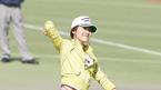 24일 한국시리즈 3차전에 앞서 그룹 의 성유리가 시구하고 있다. /대구=손용호 기자