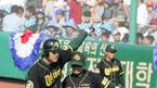 24일 한국시리즈 3차전서 8-3으로 이겨 1승1무1패를 만든 삼성의 양준혁(왼쪽)과 진갑용이 승리의 하이파이브를 나누고 있다. /대구=손용호 기자