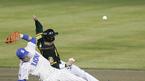 28일 한국시리즈 6차전 현대 3회말 공격 2사 1,2루서 삼성 포수 진갑용이 2루주자 전근표의 리드가 많자 견제구를 던졌으나 공이 중견수 앞으로 빠지고 있다. 삼성 유격수는 조동찬./잠실=손용호 기자