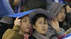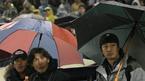 현대 응원단이 술을 마시며 경기를 관전하고 있다. /잠실=손용호 기자