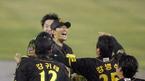 현대 선수들이 김재박 감독을 하늘 높이 헹가래 치고 있다./잠실=손용호 기자