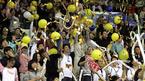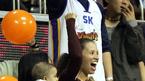 서울 SK팬들이 5일 부산 KTF전에서 전희철의 3점슛 두개로 전세를 뒤집자 풍선을 흔들며 환호하고 있다. 잠실학생체=손용호기자