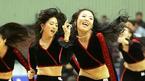 10일 잠실 경기 도중 서울 삼성의 치어리더들이 애교 넘치는 율동으로 관객들을 즐겁게 해주고 있다. /잠실체=손용호 기자
