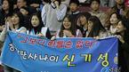 삼보 신기성의 열련한 팬들이 플래카드를 들고 신기성을 응원하고 있다. /안양=손용호 기자(폭탄뉴스.com)