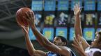 원주 삼보의 그레이가 안양sbs의 골밑을 현란한 개인기로 돌파, 레이업슛을 쏘고 있다. /안양=손용호 기자(폭탄뉴스.com)