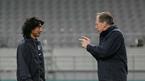 15일 상암 구장에서 열린 월드컵 대표팀 야간 적응 훈련 도중 본프레레 감독이 안정환을 따로 불러 세워 놓고 지시를 하고 있다./손용호 기자(폭탄뉴스.com)