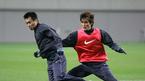 본프레레호의 황태자 이동국(왼쪽)과 히딩크호의 황태자였던 안정환이 15일 상암구장에서 나란히 훈련하고 있다./손용호 기자(폭탄뉴스.com)