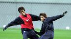 네덜란드 PSV 아인트호벤의 박지성(왼쪽)과 스페인 누만시아의 이천수가 상암 구장에서 함께 몸을 풀며 그동안 못 나눈 얘기를 나누며 회포를 풀고 있다./손용호 기자(폭탄뉴스.com)