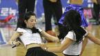 18일 부천 경기서 인천 전자랜드의 치어리더가 하프 타임 때 다리를 쭉 뻗어 올리며 건강미를 과시하고 있다./부천=손용호 기자(폭탄뉴스.com)