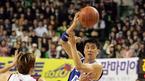 19일 프로농구 대구 경기서 전주 KCC의 이상민이 대구 오리온스 골밑을 파고들다 상황이 여의치 않자 왼쪽으로 볼을 빼고 있다./대구=손용호 기자(폭탄뉴스.com)