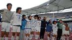 월드컵 아시아 2차예선 몰디브전서 선제 결승 중거리슛을 터뜨려 일약 영웅으로 발돋움한 수원 삼성의 김두현이 20일 프로축구 후기리그 우승 세리머니로 자신의 유니폼을 서포터스에게 던져 준 뒤 몸을 움츠리고 있다./인천=