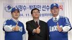현대에서 FA로 나와 삼성과 계약한 심정수(오른쪽)과 박진만이 23일 입단식을 갖고 포즈를 취하고 있다./손용호 기자(폭탄뉴스.com)