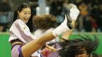 서울 SK 치어리더들이 경기 중간 관중을 위해 그룹 퍼포먼스를 벌이고 있다. /잠실학생체=손용호 기자(폭탄뉴스.com)