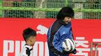 28일 서울 손기정 체육공원에서 열린 홍명보와 함께 하는 푸마 축구 클리닉에서 최태욱이 골키퍼로 변신, 참가자들의 슈팅을 막고 있다./손용호 기자(폭탄뉴스.com)