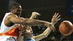 부산 KTF의 미나케와 원주 TG삼보의 김주성이 골밑에서 리바운드를 다투고 있다./부산=손용호 기자(폭탄뉴스.com)