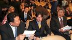 11일 코엑스에서 열린 2004 프로야구 골든글러브 시상식에 앞서 시상자로 나설 선동렬 삼성 , 김경문 두산 감독,유남호 기아 감독(왼쪽으로부터)이 시상대에서 읽을 대본을 공부하고 있다. 그러나 선 감독은 시상대서 탤런트 박