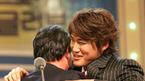 11일 코엑스에서 열린 2004 프로야구 골든글러브 시상식에서 포수 부문 수상자인 두산의 홍성흔이 포수 출신이라 시상을 맡은 소속 팀의 김경문 감독(왼쪽)과 뜨겁게 포옹하고 있다./손용호 기자(폭탄뉴스.com)
