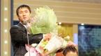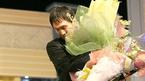 11일 열린 2004 프로야구 골든글러브 시상식에서 투수 부문 수상자로 선정된 삼성의 배영수가 팀 선배 박종호의 아들이 주는 꽃다발을 받기 위해 애쓰고 있다./손용호 기자(폭탄뉴스.com)