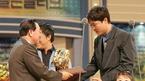 11일 열린 2004 프로야구 골든글러브 시상식에서 유격수 부문 수상자로 선정된 박진만(현대->삼성)이 올라오자 시상자인 김재박 현대 감독이 짐짓 골든글러브를 안 주려는 듯 숨기는 시늉을 하고 있다. FA자격으로 이적한 박진만