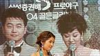11일 코엑스에서 열린 2004 프로야구 골든글러브 시상식에서 투수 부문 시상을 맡은 선동렬 삼성 감독이 다소 긴장된 표정으로 인기 탤런트 박은혜와 함께 시상대로 걸어 나오고 있다./손용호 기자(폭탄뉴스.com)