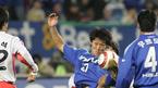 12일 벌어진 2004 삼성 하우젠 K리그 챔피언 결정전 2차전 후반 교체 멤버로 기용된 수원 삼성의 스트라이커 김동현이 포항 스틸러스 수비진 사이서 오버헤드킥을 시도했으나 골문을 벗어났다./수원=손용호 기자(폭탄뉴스.com)