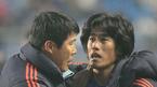 차범근 수원 삼성 감독이 12일 프로축구 챔피언 결정전 후반에 교체돼 들어간 플레잉코치 서정원(오른쪽)을 다시 벤치로 불러들이면서 달려 나가 따뜻이 맞이하고 있다./수원=손용호 기자(폭탄뉴스.com)