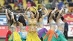 수원 삼성과 포항 스틸러스의 2004 프로축구 챔피언 결정전 2차전이 벌어진 12일 하프타임 때 벨리 댄서들이 나와 아름다운 율동을 선보이고 있다./수원=손용호 기자(폭탄뉴스.com)