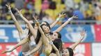 수원 삼성과 포항 스틸러스의 2004 프로축구 챔피언 결정전 2차전이 벌어진 12일 하프타임 때 벨리 댄서들이 나와 고혹적인 자태로 아름다운 율동을 선보이고 있다./수원=손용호 기자(폭탄뉴스.com)