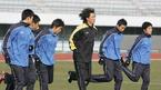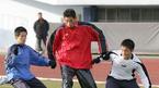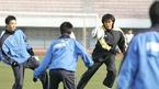 홍명보 장학금을 받은 축구 꿈나무들이 성남종합운동장에서 일본에서 지도자 생활을 하고 있는 차상해와 함께 미니게임을 하고 있다. /성남=손용호 기자(폭탄뉴스.com)