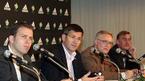 아디다스와 2006 독일월드컵 조직위원회가 17일 부산 매리어트 호텔에서 공동 개최한 기자회견에서 올리버 비어호프(2006 월드컵 명예홍보대사) 허버트 하이너(아디다스 살로몬 그룹 회장) 호스트 슈미트(2006 월드컵 조직위원회