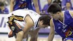 2004년의 마지막 농구경기인 31일 부천 경기서 플로어에 넘어져 있는 서울 SK의 조상현을 팀 동료 크리스 랭이 점프하며 피하고 있다./부천=손용호 기자(폭탄뉴스.com) [Copyright ⓒ OSEN(www.osen.co.kr) 무단전재 및 재배포 금지]
