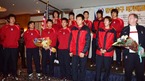 로스앤젤레스에서 전지 훈련 중인 축구대표팀이 13일(한국시간) LA한인회가 시내 래디슨 윌셔 플라자 호텔에서 주최한 환영 만찬에 참석, 한명씩 소개되고 있는 가운데 이동국이 호명되자 앞으로 한 발 나오며 인사하고 있다./L