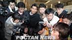 한국 축구의 차세대 골잡이로 각광받고 있는 '득점 기계' 박주영(20.고려대)이 한 달여의 중동 및 스페인 전지훈련을 마치고 11일 오후 귀국했다. 기자들이 박주영과의 인터뷰에서 한마디라도 놓치지 않기 위해 진지한 표정으로