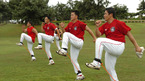 하와이 전훈 중인 기아 선수단이 양발목에 족쇄 형식의 고무줄을 묶고 다리를 올리는 독특한 방식으로 체력 훈련을 진행 중이다. 기아 고참 심재학 마해영 이종범(왼쪽 3명) 등이 열성을 보이고 있다. /기아 타이거즈 제공 (Copyr