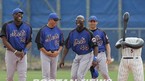 플로리다주 포트세인트루시의 뉴욕 메츠 스프링캠프에서 24일(한국시간) 클리프 플로이드, 카를로스 벨트란, 마이크 캐머런(왼쪽에서부터) 등 팀 중심 타자들이 훈련용 인형의 머리를 숨겨놓고 재미있다는 듯 웃고 있다. 포트