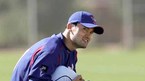 텍사스 레인저스의 애리조나주 서프라이즈 스프링캠프에서 2일(한국시간) 박찬호가 동료들이 수비 훈련을 하는 사이 자신의 차례를 기다리며 공을 담는 통에 앉아 몸을 풀고 있다./서프라이즈(미국 애리조나주)=손용호 기자 spj
