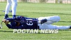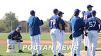 텍사스 레인저스의 애리조나주 서프라이즈 스프링캠프에서 2일(한국시간) 박찬호가 자신의 차례를 마치고 내야 밖으로 나온 뒤 동료 투수들의 수비훈련을 지켜보고 있다./서프라이즈(미국 애리조나주)=손용호 기자 spjj@poctannew