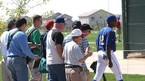 텍사스 레인저스의 애리조나주 서프라이즈 스프링캠프에서 2일(한국시간) 벅 쇼월터 감독(오른쪽)과 오렐 허샤이저 투수코치가 청백전을 지켜보다 서로 의견을 나누고 있다./서프라이즈(미국 애리조나주)=손용호 기자 spjj@poctan