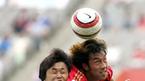어린이날인 5일 전주 월드컵경기장에서 열린 2005 삼성 하우젠컵 전북 현대-FC 서울전에서 부상에서 회복돼 올 시즌 첫 출장한 전북 골키퍼 이용발이 서울 김은중에 앞서 펀칭으로 공중볼을 처리하고 있다./전주=손용호 기자 spjj