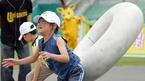 어린이날인 5일 현대와 기아의 수원 경기에 앞서 어린이들이 참가하는 게임 이벤트가 열렸다. 한 여자 어린이가 튜브를 통과하고 있다./수원=주지영 기자 jj0jj0@poctannews.com (Copyright ⓒ 폭탄뉴스 www.poctannews.com 무단전재 및 재배