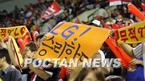 21일 LG 트윈스와 두산 베어스의 잠실 라이벌전을 보기 위해 잠실 구장을 찾은 LG팬들이 '오늘은 승리한다'를 외치며 열띤 응원을 하고 있다./잠실=주지영 기자 jj0jj0@poctannews.com (Copyright ⓒ 폭탄뉴스 www.poctannews.com 무단전재 및 재