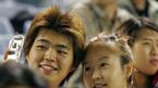 21일 LG 트윈스와 두산 베어스의 잠실 라이벌전이 벌어진 잠실 구장 LG 응원석서 한 커플이 핸드폰으로 함께 사진을 찍으며 즐거워하고 있다./잠실=주지영 기자 jj0jj0@poctannews.com (Copyright ⓒ 폭탄뉴스 www.poctannews.com 무단전재 및