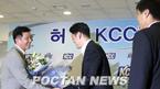 허재 전주 KCC 신임 감독이 18일 오후 서울 서초동 본사 전시관에서 취임식 및 기자회견을 가졌다. 허재 감독이 정몽익 KCC 구단주(왼쪽)와 악수를 나누고 있다./주지영 기자 jj0jj0@poctannews.com (Copyright ⓒ 폭탄뉴스 www.poctannews.com 무
