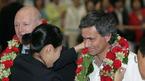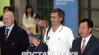 오는 20일 수원 월드컵경기장에서 수원 삼성과 친선 경기를 가질 잉글랜드 프리미어리그 챔피언 첼시가 18일 오후 입국했다. 조세 무링요 감독이 축하 화환을 받고 있다. /인천공항=손용호 기자spjj@poctannews.com (Copyright ⓒ 폭탄뉴