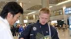 오는 20일 수원 월드컵경기장에서 수원 삼성과 친선 경기를 가질 잉글랜드 프리미어리그 챔피언 첼시가 18일 오후 입국했다. 첼시의 잉글랜드 국가대표 스타 조 콜이 한국팬으로부터 받은 선물을 들고 공항을 빠져나가고 있다.